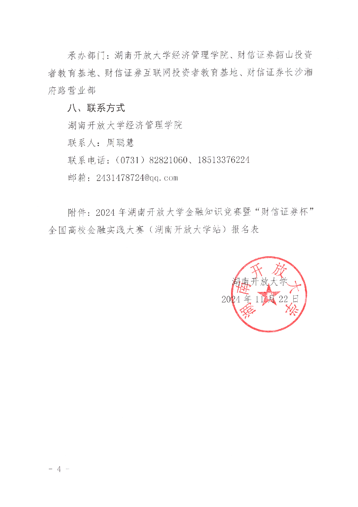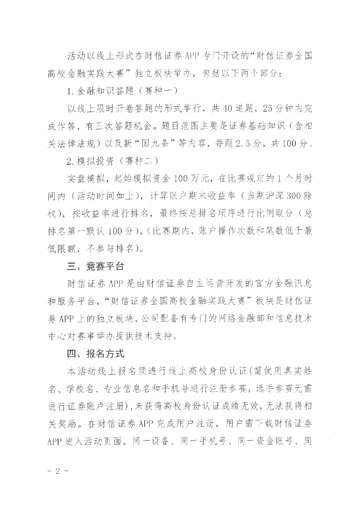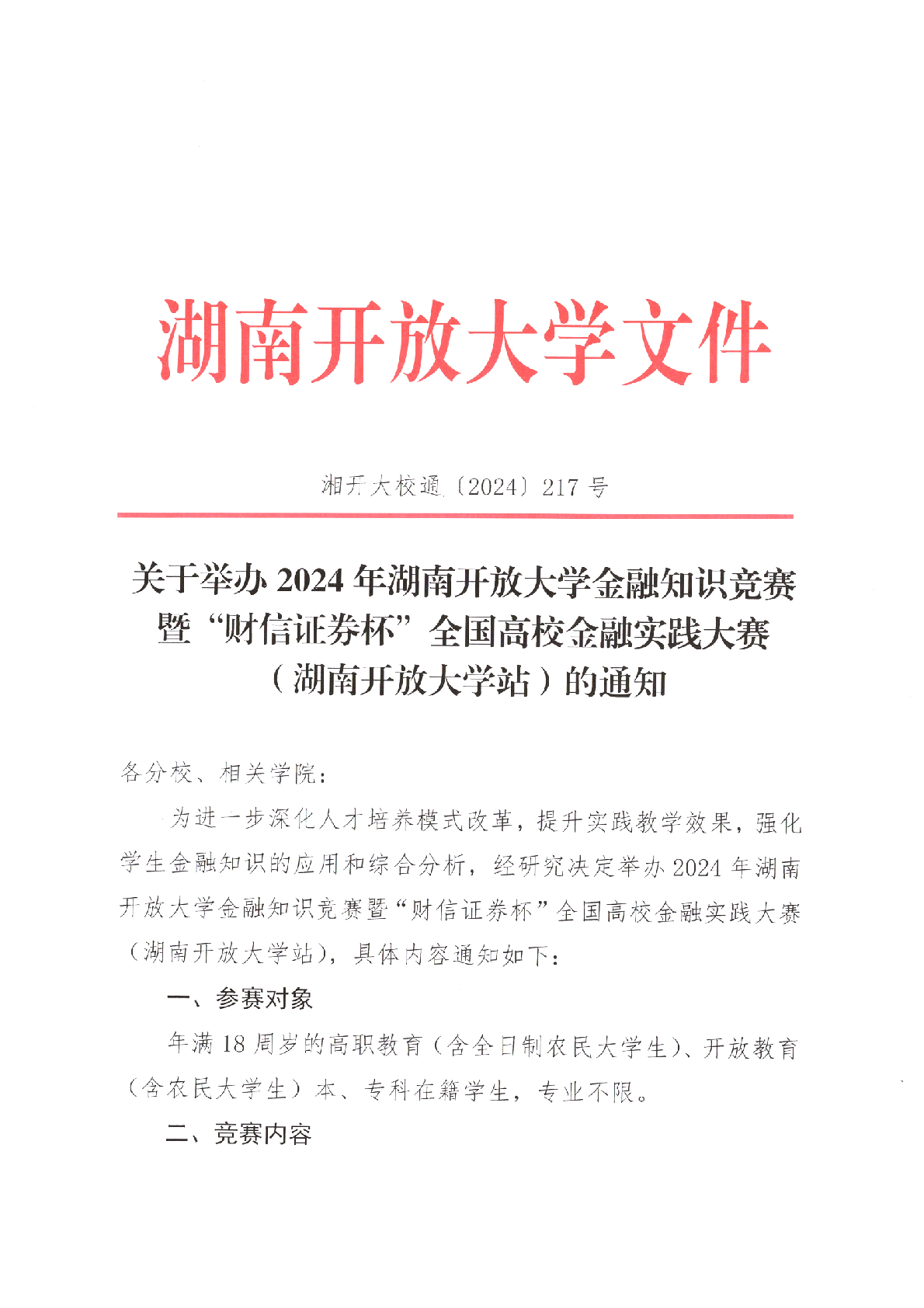 关于举办2024年香蕉91视频APP金融知识竞赛暨“财信证券杯”全国高校金融实践大赛(香蕉91视频APP站)的通知