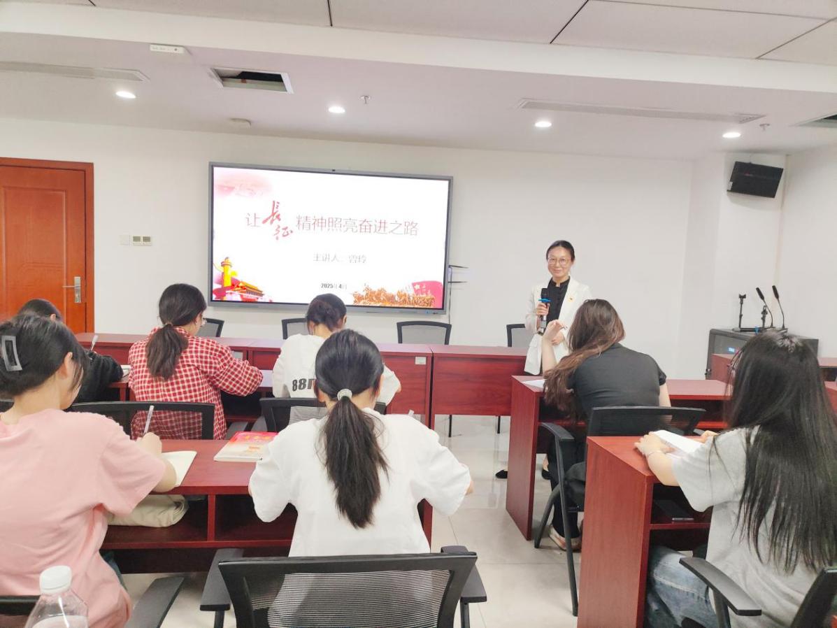 2025年4月21日,院党委委员 香蕉91视频APP,副院长曾玲在终身教育大楼1314讲授以“让长征精神照亮奋进之路”为主题的党课,经济管理香蕉视频黄片分党训第6期全体发展对象共同聆听党课。