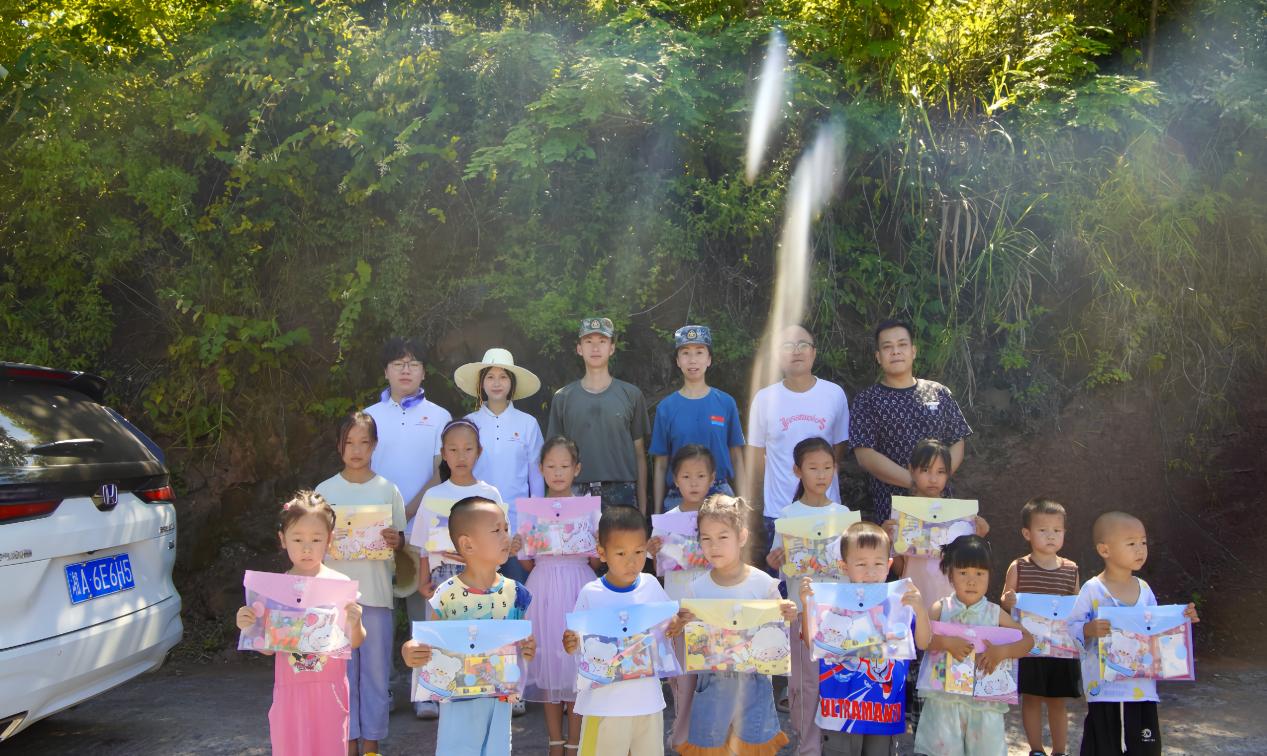 经济管理香蕉视频黄片暑期“三下乡”社会实践团和孩子们合影