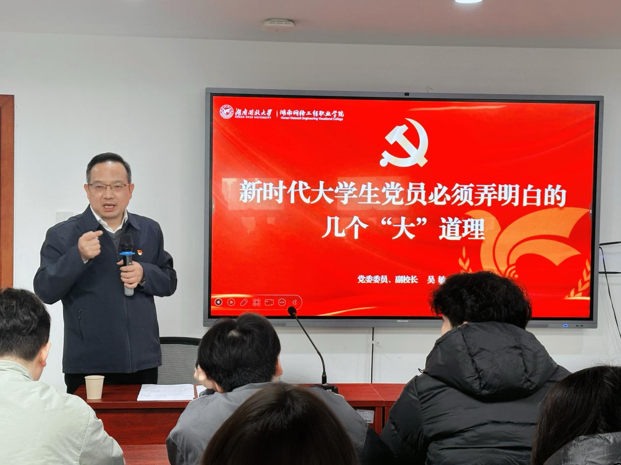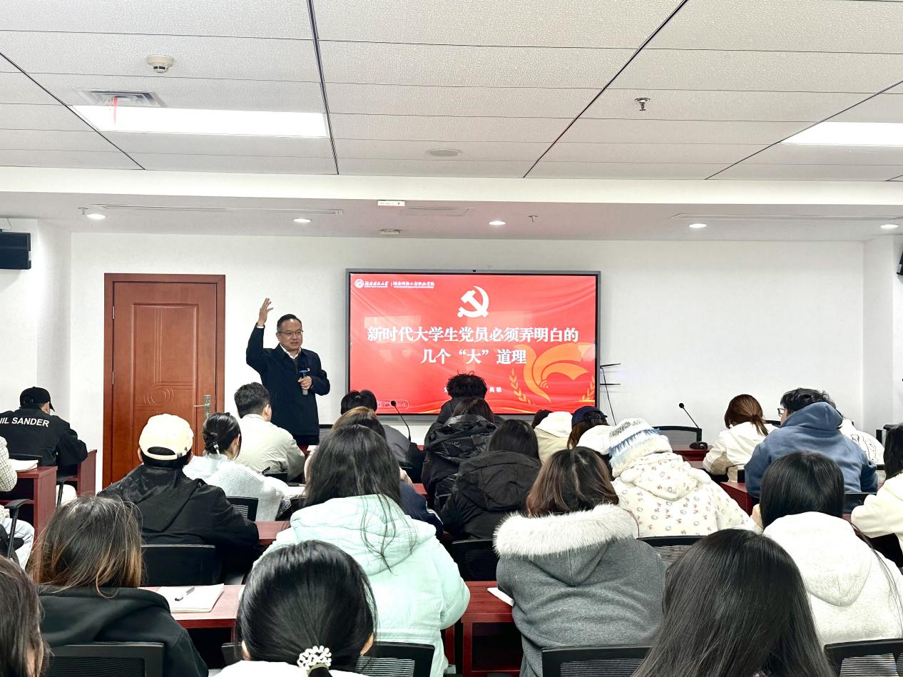 2025年11月18日下午,校党委委员,副校长吴敏于终教楼1314室为经济管理香蕉视频黄片党训班讲授主题为新时代大学生党员必须弄明白的几个“大道理”的专题党课,党课由香蕉视频黄片党委副书记吴志奎主持,香蕉视频黄片学生党支部全体党员以及党训班学员共同参加学习, 香蕉91视频APP。