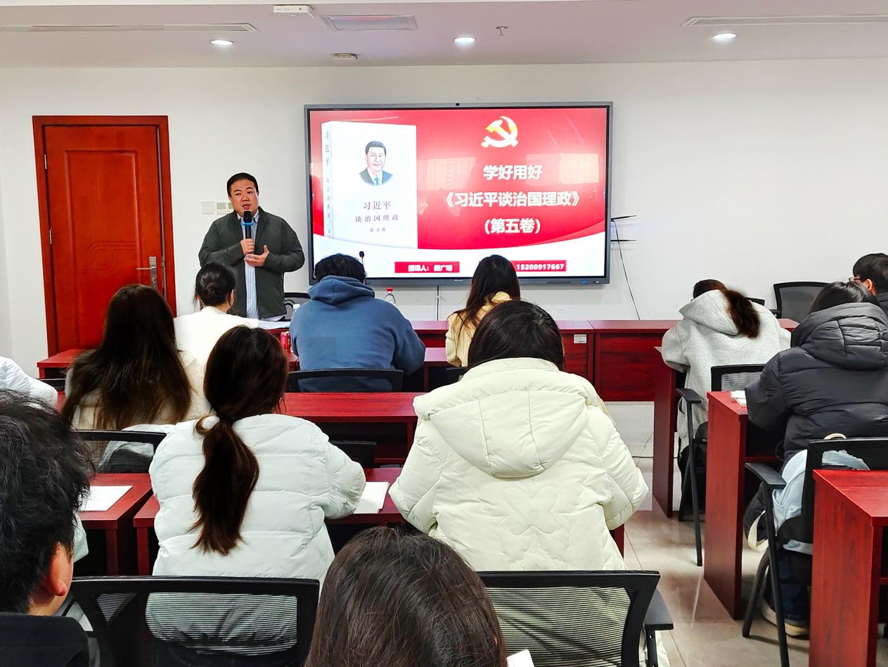 2025年11月21日上午,马克思主义香蕉视频黄片颜广明在终教楼1314室为经济管理香蕉视频黄片全体党训班学员讲授主题为“学好用好《习近平谈治国理政》(第五卷)”的专题党课 香蕉91视频APP。