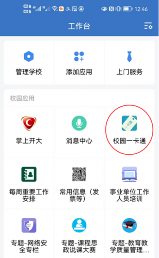 2,点击“工作台”,在工作台中找到“校园一卡通”并点击。 香蕉成人臿臿在线观看。