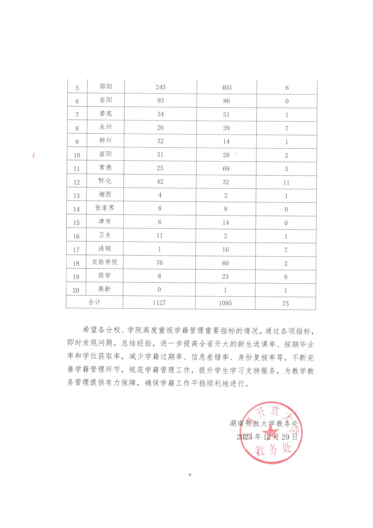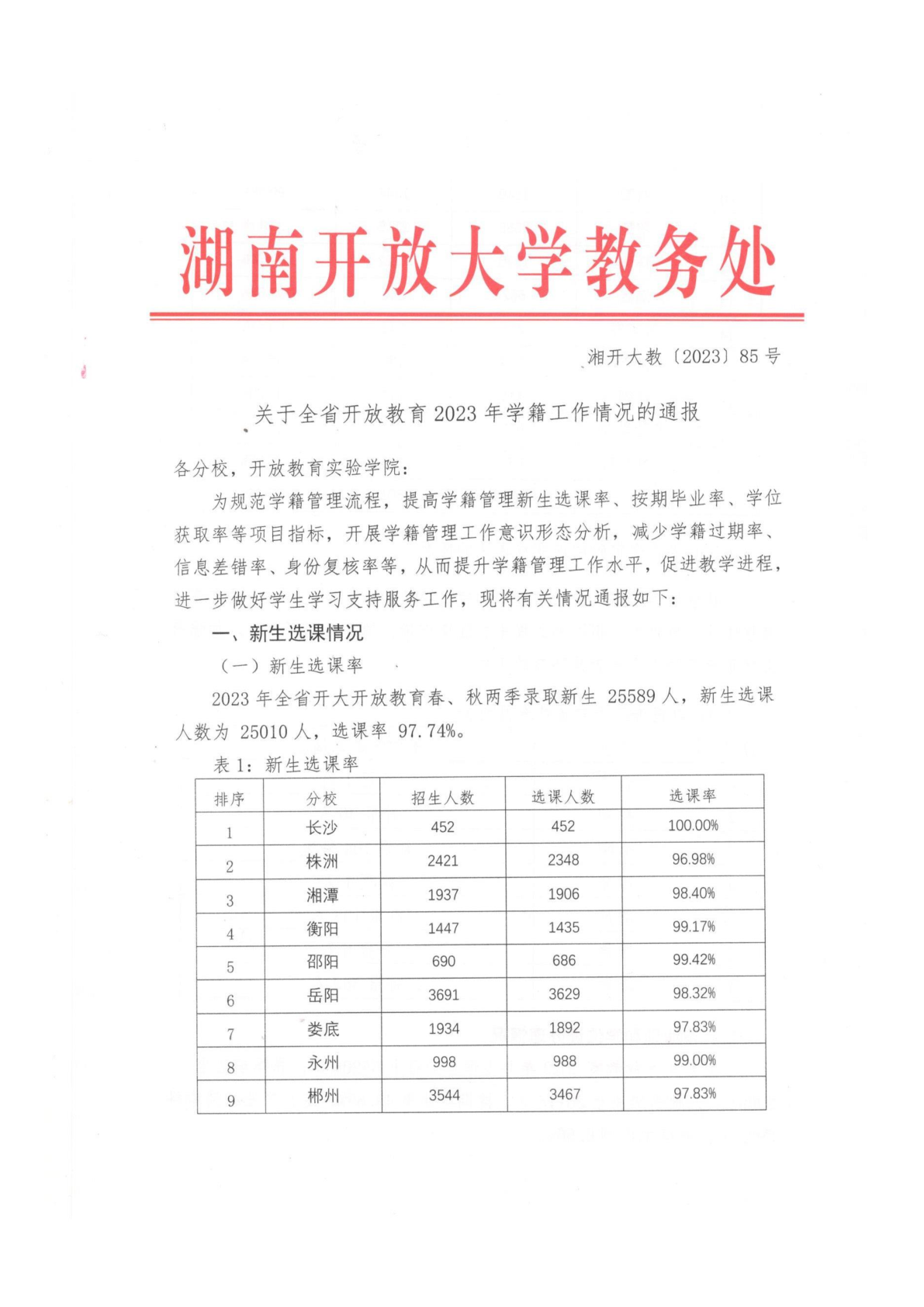 香蕉91视频APP - 湘开大教[2023] 85 号:关于全省开放教育2023年学籍工作情况的通报