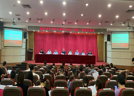 为推动学习贯彻习近平新时代中国特色社会主义思想主题教育走深走实,坚持把开展主题教育与推动开放教育高质量发展结合起来,顺利迎接10月国家开放大学办学评估,实现湖南分部办学评估“优秀”目标,7月3日,香蕉成人臿臿在线观看在远教楼学术报告厅召开办学评估百日攻坚工作部署会,号召全校教职工“奋战一百天,坚决打赢评估攻坚战” 香蕉91视频APP,全体在家校领导出席会议,副处以上干部及评估工作小组成员共100余人参加会议,会议由党委委员,副校长王焕清主持。