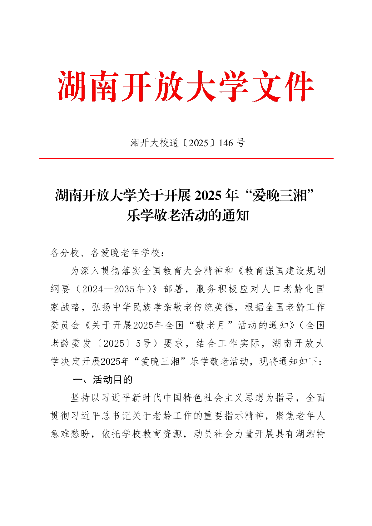 香蕉91视频APP关于开展2025年“爱晚三湘”乐学敬老活动的通知
