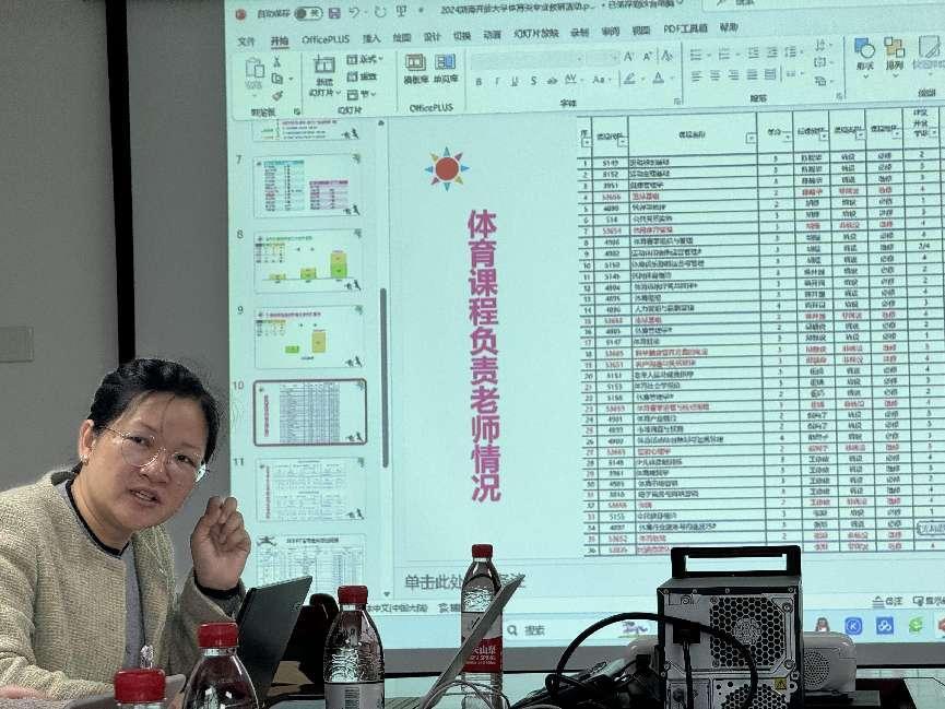 教研室主任陈晓华主持这次会议 下载日本香蕉视频,他强调了课程建设对于专业发展的重要性,并介绍了2024年春季学期开放教育体育专业教学工作的总体情况,专业责任教师邱颖俊和张斯分别汇报了社会体育指导与管理(本科),体育运营与管理(专科)的专业建设情况,提出了在“一网一平台”课程建设中遇到的问题。