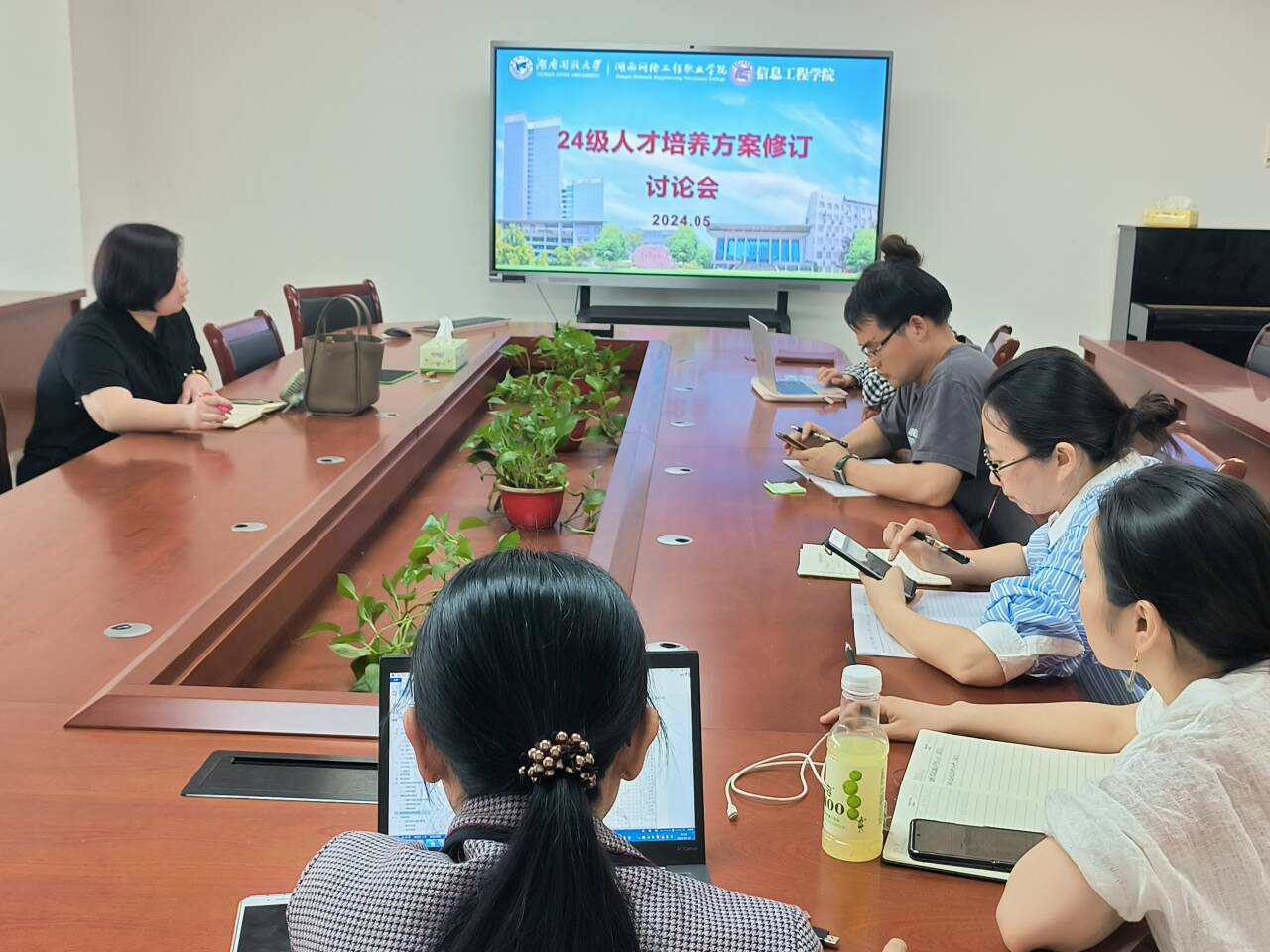 为加强学科专业的建设,改革和创新信息工程香蕉视频黄片的人才培养工作,2024年5月14日,香蕉视频黄片院长谭阳,副院长刘艳及各专业教研室主任对2024级人才培养方案进行了研讨,谭阳院长首先对本次人才培养方案修订的背景 香蕉91视频APP,原则,时代性和创新性进行了全面的解读,在专业的特色,核心课程的建设,学生的发展及就业,学科评估认证等方面提出了许多有益的建议。
