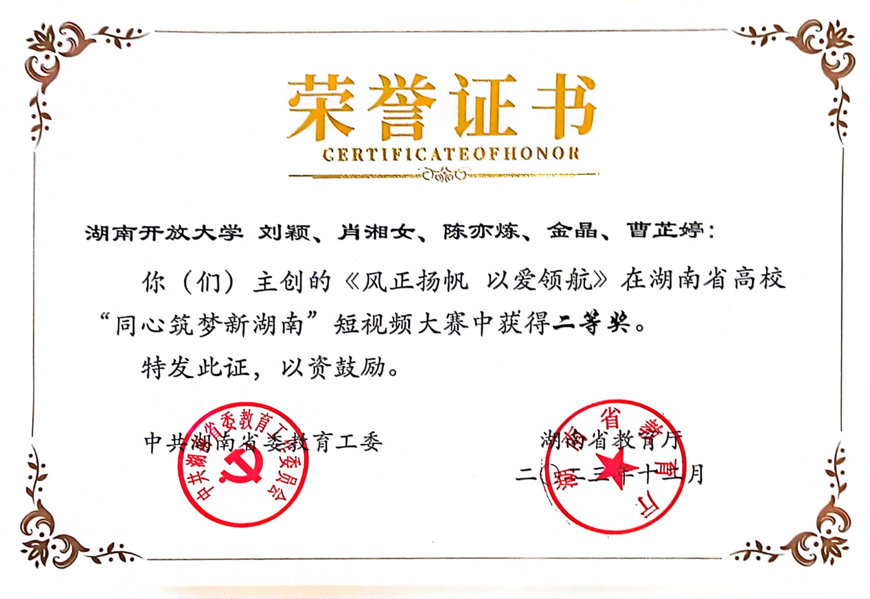 我院师生荣获全省高校“同心筑梦新湖南”短视频大赛二等奖