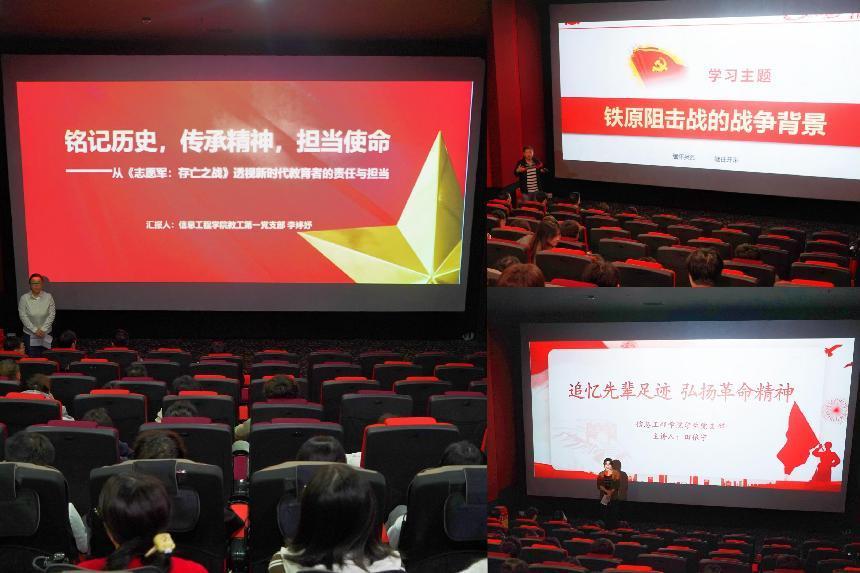为进一步落实学习革命文化和传承红色精神,坚定理想信念,不断提升党性修养,10 月 15 日下午,信息工程香蕉视频黄片学生党支部教师党员,预备党员,发展对象,积极分子等共计 112人,开展“光影铸魂”主题党日活动 香蕉91视频APP,观看电影《志愿军:存亡之战》。