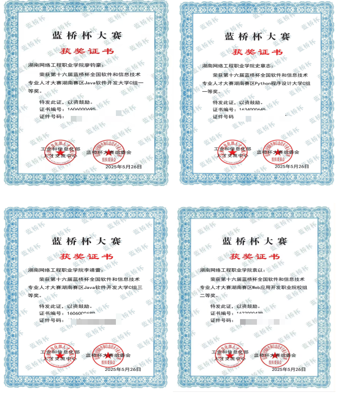 近日,第十六届蓝桥杯大赛(软件赛/电子赛)省赛圆满落幕,我院2023级软件技术专业学生参与“Java软件开发”,“Python程序设计”,“Web应用开发”赛项,其中廖钧豪获Java软件开发一等奖,李靖蕾获三等奖 香蕉91视频APP,史章志获Python程序设计获得一等奖,袁以获web应用开发获得二等奖。