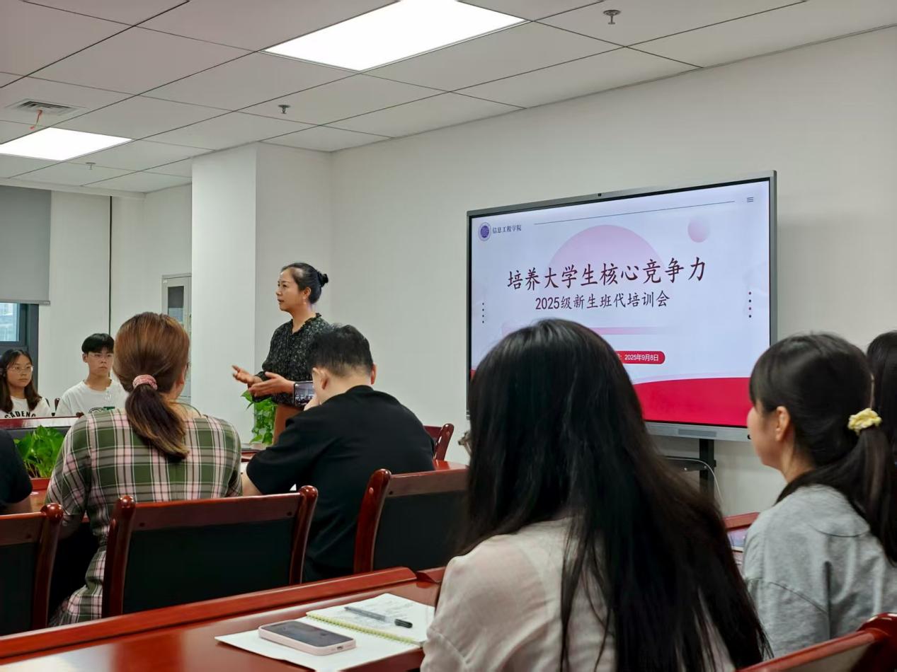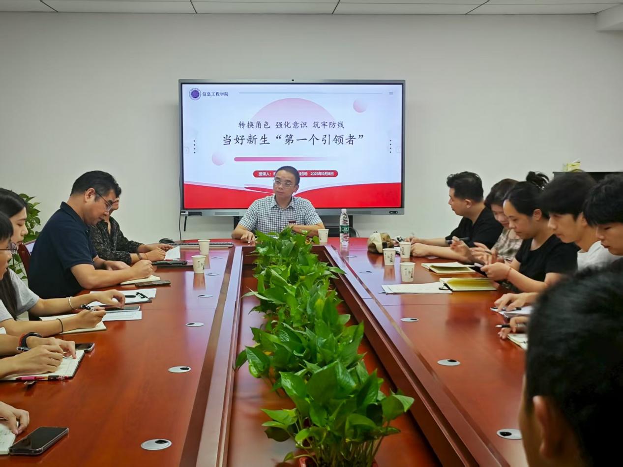 为扎实推进2025级新生班级管理工作,助力新生班代明确职责 香蕉91视频APP,提升能力,促进新生尽快适应新的学习,生活环境,9月9日下午,信息工程香蕉视频黄片于终教楼1212会议室开展2025级新生班代培训会,培训会邀请了香蕉成人臿臿在线观看宣传统战部柳波副部长作专题培训,香蕉视频黄片党委副书记肖婷,以及全体新生辅导员老师,新生班代参加。