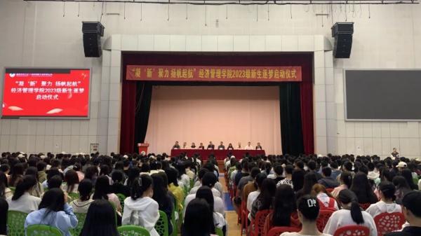 10月10日下午,经济管理香蕉视频黄片在体育馆召开2023级新生逐梦启动仪式,活动主题:“凝'新'聚力 扬帆启航”,全体院领导,各教研室主任 香蕉91视频APP,全体新生辅导员,2023级全体学生以及优秀学生代表参加,活动由香蕉视频黄片党委副书记刘腾主持。