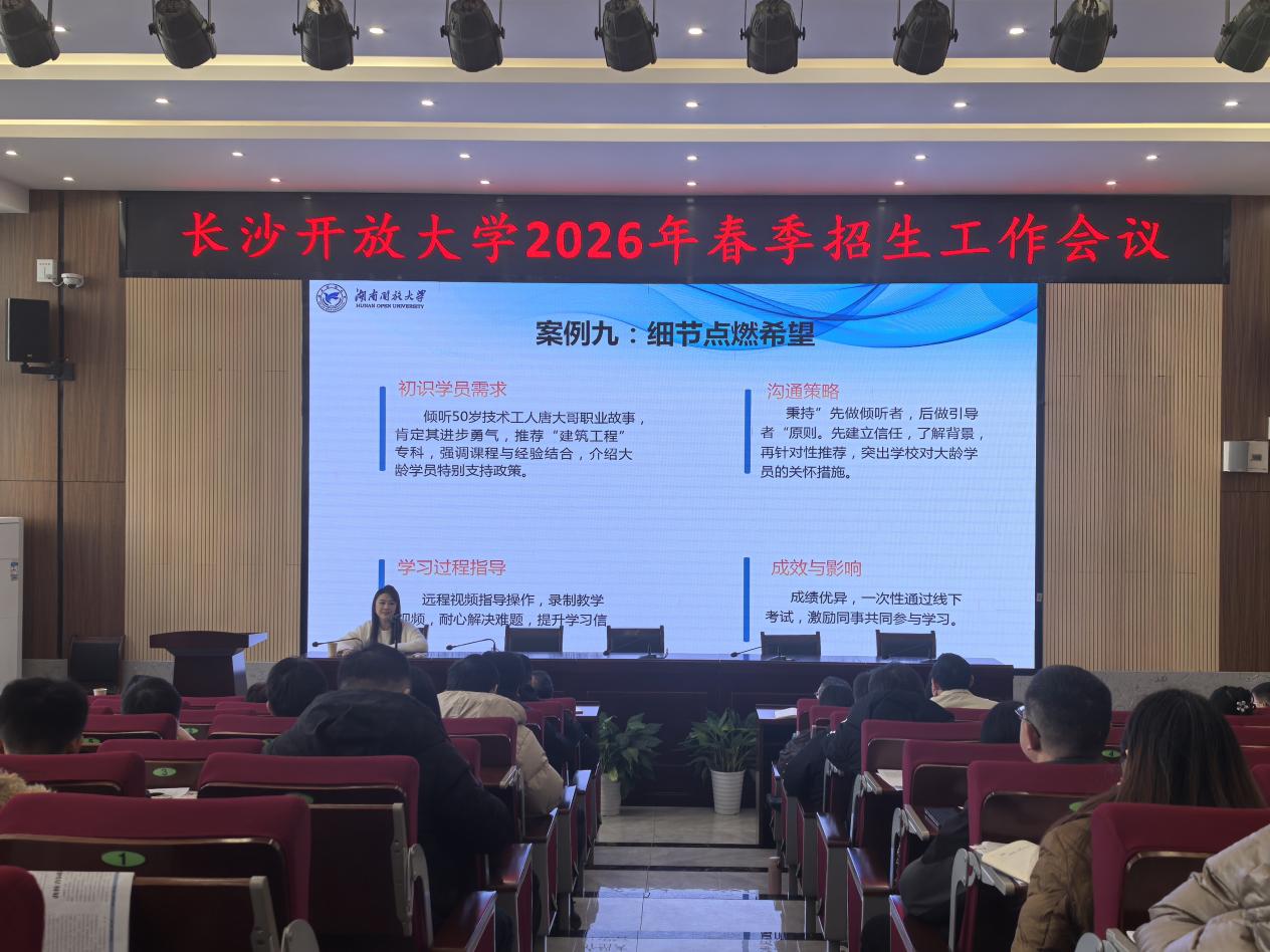 1月9日下午,长沙开放大学召开2026年春季招生工作会议,全校教职工参会,会上,我院青年教师肖琼应邀作招生与教学支持服务工作经验分享 香蕉91视频APP,以鲜活案例与务实理念为参会人员提供了有益借鉴。