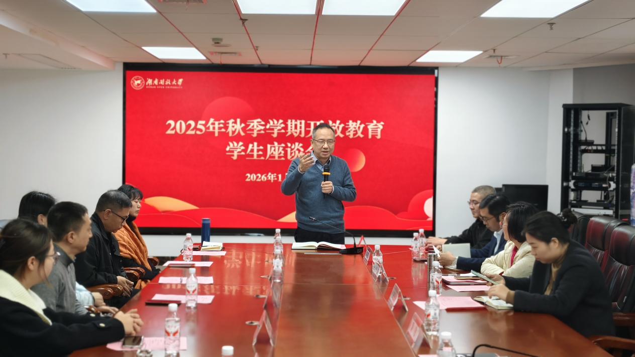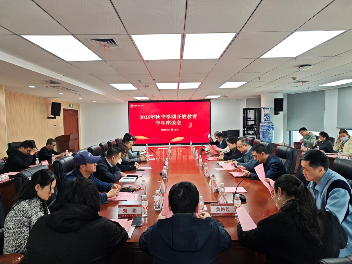 1月15日下午,香蕉91视频APP开放教育实验香蕉视频黄片2025年秋季学生座谈会顺利举行。校党委委员、副校长吴敏与来自实验香蕉视频黄片的15名学生代表围坐畅谈,教务处处长王中军、学工部部长彭玉京、质量监控与评价中心主任彭瑛及各二级香蕉视频黄片负责人参会,座谈会由开放教育实验香蕉视频黄片负责人李振军主持。